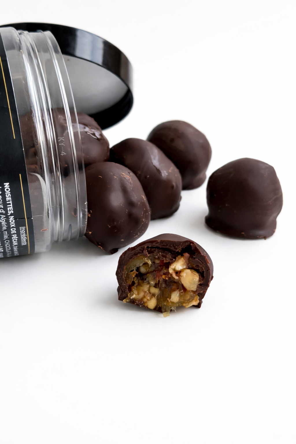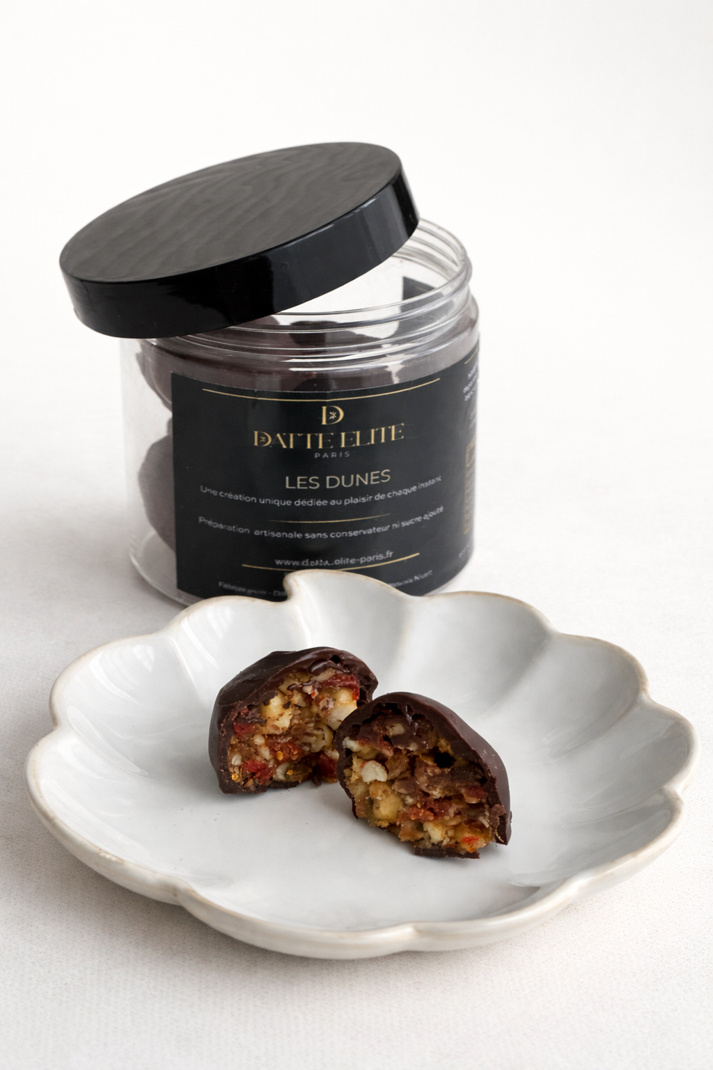 6 créations autour de la datte Deglet Nour, délicatement garnie et enrobée de chocolat premium.
